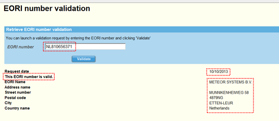 유요한 EORI 번호라면서 정보가 뜹니다.